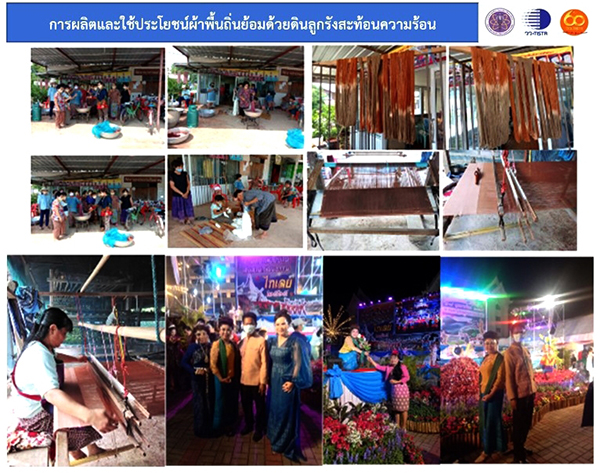 ศ. (วิจัย) ดร. ชุติมา เอี่ยมโชติชวลิต ผู้ว่าการ วว. กล่าวว่า วว. โดย ศูนย์เชี่ยวชาญนวัตกรรมวัสดุ ประสบผลสำเร็จในการดำเนินโครงการการย้อมผ้าพื้นถิ่นด้วยดินลูกรังที่พัฒนาให้เกิดการสะท้อนความร้อน ภายใต้กรอบโครงการพัฒนานวอัตลักษณ์ ยกระดับชุมชนนวัตกรรม โดยมีการดำเนินงานวิจัยและพัฒนาร่วมกับจังหวัดเลย ณ กลุ่มทอผ้าและตัดเย็บบ้านสันติภาพพัฒนา ตำบลโนนป่าซาง อำเภอผาขาว จังหวัดเลย และมีต้นแบบผลิตภัณฑ์ที่พัฒนาร่วมกัน ได้แก่ “ผลิตภัณฑ์ผ้าทอสะท้อนความร้อน” ซึ่งมีจุดเด่นคือ 1) ใช้วัตถุดิบที่มีและผลิตขึ้นในพื้นที่ และ 2) เป็นผ้าที่สะท้อนความร้อนได้ดีกว่าผ้าทั่วไป
