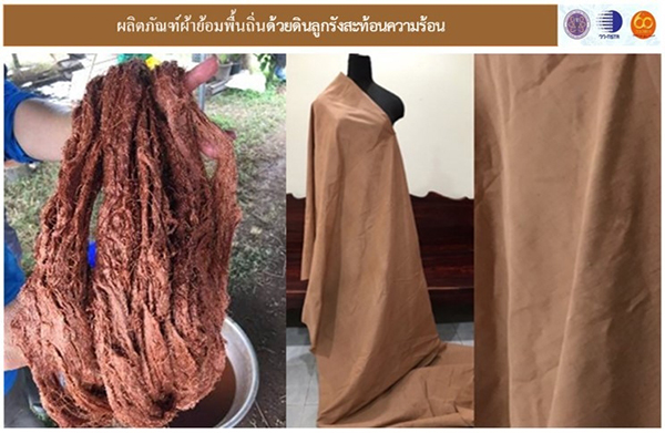 กระทรวงการอุดมศึกษา วิทยาศาสตร์ วิจัยและนวัตกรรม (อว.) โดย สถาบันวิจัยวิทยาศาสตร์และเทคโนโลยีแห่งประเทศไทย (วว.) ประสบผลสำเร็จในการวิจัยพัฒนาเทคโนโลยีย้อมผ้าพื้นถิ่นด้วยดินลูกรังช่วยสะท้อนความร้อน จับมือจังหวัดเลย พัฒนา “ผลิตภัณฑ์ผ้าทอสะท้อนความร้อน” ครั้งแรกของประเทศ