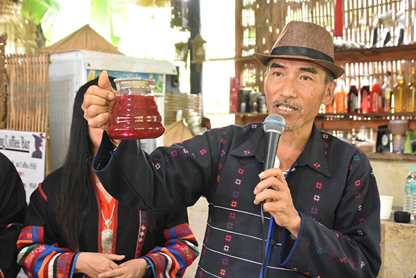 ทางด้านนายอาพี สะโง้ หัวหน้าโครงการวิจัย เรื่อง “การเพิ่มมูลค่าผลิตภัณฑ์สินค้าชนเผ่าอ่าข่า สู่การเสริมสร้างเศรษฐกิจชุมชน” กล่าวว่า โครงการวิจัย เรื่อง “การเพิ่มมูลค่าผลิตภัณฑ์สินค้าชนเผ่าอ่าข่า สู่การเสริมสร้างเศรษฐกิจชุมชน” ได้รับการสนับสนุนทุนจาก วช. โดยงานวิจัยเป็นหนึ่งกระบวนการที่คนในชุมชนได้มีโอกาสร่วมคิด ร่วมทบทวนสถานการณ์ ตั้งคำถาม วางแผนหาข้อมูล ทดลองทำ รวมไปถึงการวิเคราะห์ สรุปผลการทำงานและหาคำตอบเพื่อปรับปรุงงานต่อไป โดยใช้ “คน” และใช้เครื่องมือการสร้างผลิตภัณฑ์ชุมชนเป็นเครื่องมือ เข้ามาร่วมในกระบวนการวิจัย ตั้งแต่การเริ่มคิด เริ่มทำอย่างเป็นรูปธรรม เรียนรู้จากการปฏิบัติการจริง (Learning By Doing) อันทำให้ชุมชนได้เรียนรู้ สร้างผลงาน มีความเก่งขึ้นในการแก้ปัญหาของตนเอง และสามารถใช้กระบวนการนี้ในการแก้ไขปัญหาอื่นๆ ในท้องถิ่นโดยมีกระบวนการศึกษาเรียนรู้อย่างมีเหตุผล ดังนั้น งานวิจัยจึงต้องเน้น “กระบวนการ” เพื่อให้เกิด “ผลผลิต” และ “ผลลัพธ์” ให้ชาวบ้านได้ประโยชน์จากงานวิจัยโดยตรง และเป็นอีกวิธีหนึ่งที่มีส่วนช่วยในการแก้ปัญหาของชาวบ้าน รวมทั้งเกิดการเปลี่ยนแปลงขึ้นจริงในชุมชน ซึ่งจะต้องอาศัย “เวที” พูดคุยกัน ถกเถียงและร่วมใช้ “ปัญญา” เพื่อหาทางออกของปัญหา