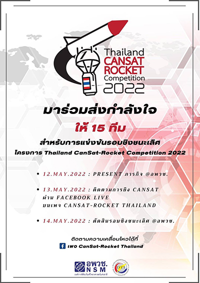 ผศ.ดร.รวิน ระวิวงศ์ ผู้อำนวยการองค์การพิพิธภัณฑ์วิทยาศาสตร์แห่งชาติ กล่าวว่า “การแข่งขัน Thailand CANSAT-ROCKET Competition 2022 จัดขึ้นต่อเนื่องเป็นปีที่ 4 เกิดจากความร่วมมือระหว่างองค์การพิพิธภัณฑ์วิทยาศาสตร์แห่งชาติ (อพวช.) และสถาบันเทคโนโลยีป้องกันประเทศ (สทป.) เพื่อสร้างและเตรียมพร้อมด้านบุคลากรทางด้านวิทยาศาสตร์และเทคโนโลยีอวกาศให้กับประเทศ และผลการตอบรับจากเยาวชนที่สนใจสมัครเข้าร่วมการแข่งขันเพิ่มมากขึ้นในทุก ๆ ปี โดยในปีนี้มีผู้สมัครเข้าร่วมการแข่งกว่า 90 ทีม และคัดเลือกเข้าสู่รอบชิงชนะเลิศจำนวน 15 ทีม เพื่อมาแข่งขันในรอบชิงชนะเลิศ ซึ่งจัดขึ้นในระหว่างวันที่ 12-14 พฤษภาคม 2565 ณ อพวช. จังหวัดปทุมธานี และหน่วยบัญชาการสงครามพิเศษทางเรือ อ.สัตหีบ จ.ชลบุรี ซึ่งถือเป็นกิจกรรมส่งเสริมการเรียนรู้ด้านวิทยาศาสตร์ที่สำคัญให้กับเยาวชน โดยเป็นไปตามวัตถุประสงค์ของ อพวช. ในการสร้างแรงบันดาลใจให้กับเยาวชนนำไปสู่การอยากเรียนรู้ในระดับที่สูงขึ้นด้านวิทยาศาสตร์และเทคโนโลยีอวกาศ เพื่อเป็นส่วนหนึ่งของการพัฒนากำลังคนด้านวิทยาศาสตร์ให้กับประเทศ”
