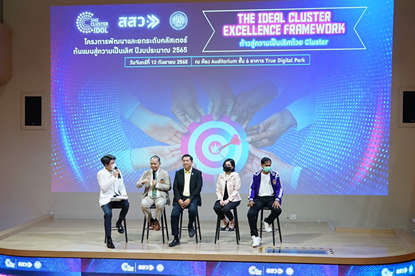 วันที่ 12 กันยายน 2565 ณ Auditorium ทรู ดิจิทัล พาร์ค สำนักงานส่งเสริมวิสาหกิจขนาดกลางและขนาดย่อม (สสว.) ร่วมกับ สถาบันเทคโนโลยีพระจอมเกล้าเจ้าคุณทหารลาดกระบัง ได้จัดงานแถลงความสำเร็จ คลัสเตอร์ธุรกิจอาหารสำเร็จรูป และ คลัสเตอร์สมุนไพรเพื่อสุขภาพ กัญชา – กัญชง ภายใต้โครงการพัฒนาและยกระดับคลัสเตอร์ต้นแบบสู่ความเป็นเลิศ ปีงบประมาณ 2565 เพื่อตอกย้ำความสำเร็จที่เกิดขึ้นจากการรวมกลุ่มกัน ระหว่างเครือข่ายธุรกิจ สมาคมการค้า สถาบันการศึกษาและศูนย์วิจัยพัฒนา ตลอดจนหน่วยงานภาครัฐที่เกี่ยวข้องกัน จนทำให้เกิดมูลค่าทางเศรษฐกิจกว่า 230 ล้านบาท นับเป็นการเพิ่มผลิตภาพโดยรวมของทุกธุรกิจที่อยู่ในคลัสเตอร์ อันจะนำไปสู่การขับเคลื่อนเศรษฐกิจของประเทศไทยได้อย่างยั่งยืน