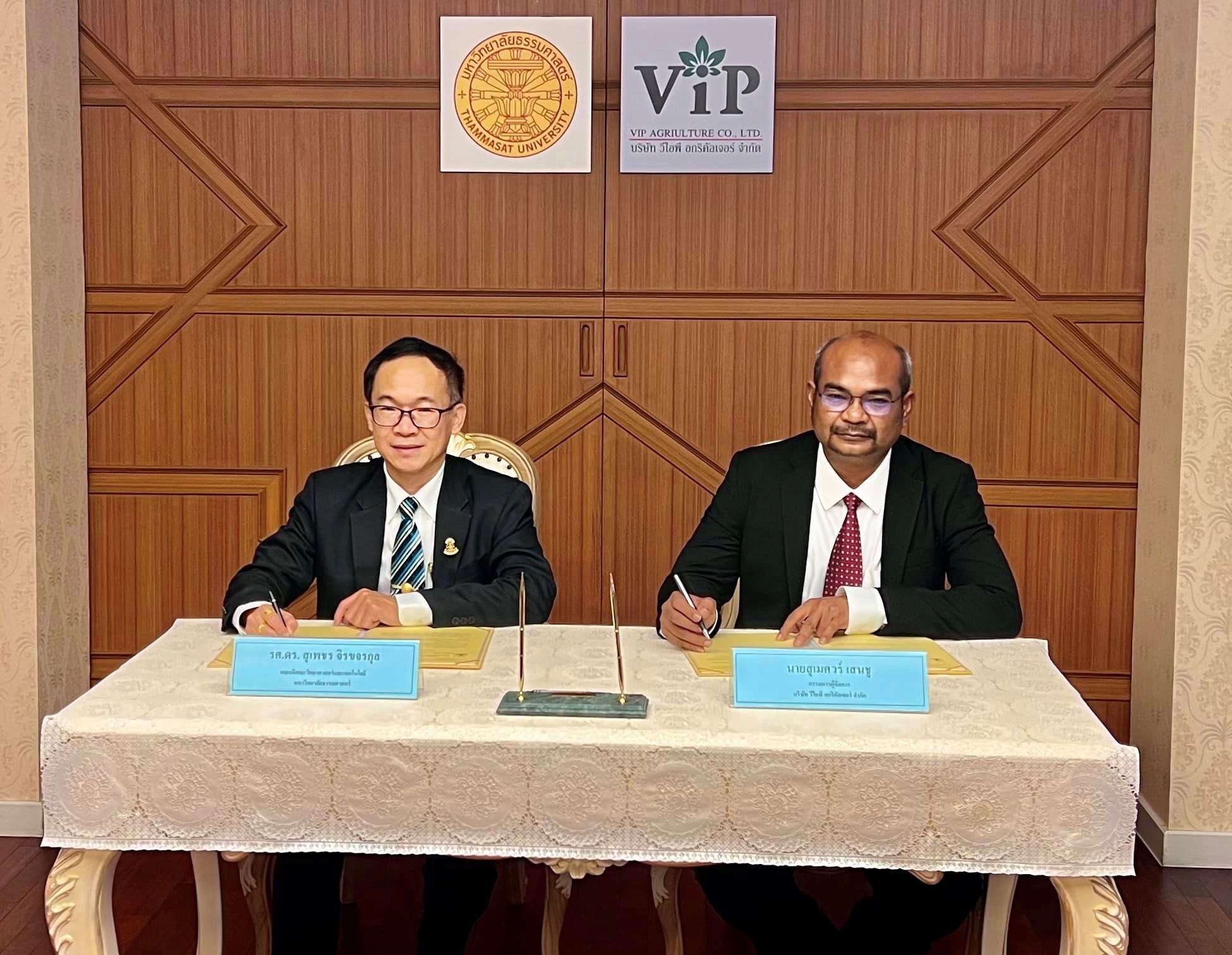 บริษัท วีไอพี อกริคัลเจอร์ จำกัด จัดพิธีลงนามบันทึกความร่วมมือทางวิชาการ กับ คณะวิทยาศาสตร์และเทคโนโลยี มหาวิทยาลัยธรรมศาสตร์ ในการพัฒนาโครงการวิจัยและถ่ายทอดเทคโนโลยีระบบการปลูกพืช เห็ดและสมุนไพร ด้วยระบบสมาร์ทฟาร์มในระบบโรงเรือนปิด ที่จะนำไปสู่การพัฒนางานวิจัยตามแนวทาง BCG economy เพื่อพัฒนานักวิทยาศาสตร์ฯ รุ่นใหม่ ไปสู่ยุคการเกษตร 4.0 ของ SCI-TU ในอนาคต รวมถึงการส่งนักศึกษาเข้าฝึกงานในหน่วยงาน
