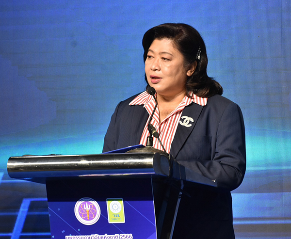 ดร.วิภารัตน์ ดีอ่อง ผู้อำนวยการสำนักงานการวิจัยแห่งชาติ กล่าวว่า วช. ภายใต้กระทรวงการอุดมศึกษา วิทยาศาสตร์ วิจัยและนวัตกรรม เป็นกลไกหนึ่งในการร่วมปฏิบัติพัฒนานำองค์ความรู้และนวัตกรรมไปพัฒนาประเทศ ตามเจตจำนงของรัฐบาลในการสร้างความเข้มแข็งจากฐานราก สร้างพลังสังคม พลังชุมชน นวัตกรรมชุมชนนวัตกรรมสังคมเพื่อพัฒนาประเทศไทยให้ก้าวไปข้างหน้าด้วยความมั่นคง โดยเห็นความสำคัญของการร่วมมือกับ กอ.รมน. หน่วยงานภาคความมั่นคงที่ร่วมสนับสนุนงานวิจัยและนวัตกรรมเพื่อเสริมสร้างความมั่นคงของรัฐ ความมั่นคงทางสังคม ความมั่นคงแบบพิเศษ ความมั่นคงทางทรัพยากรธรรมชาติ สิ่งแวดล้อม พลังงานและอาหาร รวมถึงความมั่นคงเฉพาะพื้นที่ตลอดระยะเวลา 5 ปีของการดำเนินงานภายใต้ความร่วมมือระหว่าง วช. และ กอ.รมน. นับเป็นความร่วมมืออันดีในการส่งต่อองค์ความรู้จากผลงานวิจัยและนวัตกรรมสู่พื้นที่ชุมชน สู่ศูนย์เรียนรู้ของเครือข่ายปราชญ์เพื่อความมั่นคงสู่ประชาชนในพื้นที่ของ กอ.รมน. ให้เป็นชุมชนที่เข้มแข็งบนฐานความรู้ด้านการวิจัยและนวัตกรรม
