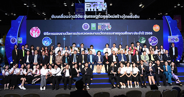 สำนักงานการวิจัยแห่งชาติ (วช.) ภายใต้กระทรวงการอุดมศึกษา วิทยาศาสตร์ วิจัยและนวัตกรรม ประกาศผลทีมสายอุดมศึกษาผู้พิชิตรางวัลในกิจกรรม “การประกวดผลงานนวัตกรรมสายอุดมศึกษา ประจำปี 2566”ภายในงานมหกรรมงานวิจัยแห่งชาติ 2566 (Thailand Research Expo 2023) ครั้งที่ 18 ในปีนี้มีผลงานจากนักประดิษฐ์ระดับชั้นอุดมศึกษา จัดแสดงจำนวน 154 ผลงาน ได้รับความสนใจจากผู้มาเยี่ยมชมงานจำนวนมาก ซึ่งผลงานที่ได้รับรางวัล จะได้รับเงินรางวัลพร้อมเกียรติบัตร จาก ดร.วิภารัตน์ ดีอ่อง ผู้อำนวยการสำนักงานการวิจัยแห่งชาติ เป็นผู้มอบรางวัล ณ เวที Highlight Stage โรงแรมเซ็นทาราและบางกอกคอนเวนชันเซ็นเตอร์ เซ็นทรัลเวิลด์ กรุงเทพมหานคร