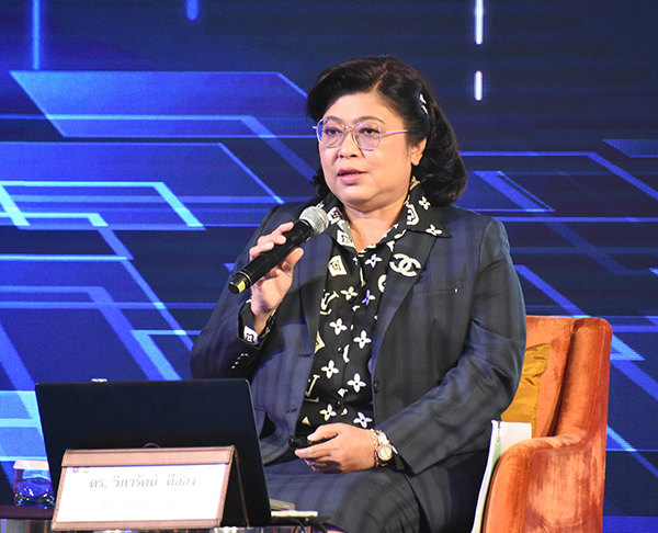 ดร.วิภารัตน์ ดีอ่อง ผู้อำนวยการสำนักงานการวิจัยแห่งชาติ กล่าวว่า เศรษฐกิจสร้างสรรค์มีหลายมิติที่เชื่อมโยงกัน เป็นการนำองค์ความรู้ไปเพิ่มผลิตภาพให้กับผลิตภัณฑ์และบริการ ซึ่งงานวิจัยจะเข้าไปมีบทบาทสำคัญในการส่งเสริมเศรษฐกิจเชิงสร้างสรรค์เพื่อนำไปสู่การยกระดับและสร้างโอกาสที่ดีให้กับพี่น้องประชาชนในระดับชุมชน โดยมีบางส่วนที่สภานโยบายการอุดมศึกษา วิทยาศาสตร์และนวัตกรรมแห่งชาติ (สอวช.) ได้ฉายภาพไว้ให้นำไปเป็นกรอบและทิศทางแนวโน้มที่ต้องการ โดย วช. ได้ให้ทุนวิจัยสนับสนุนเรื่องนี้มานานแล้วผ่านทางงานวิจัยเชิงพื้นที่มีการนำไปใช้ประโยชน์และส่งเสริมการถ่ายทอดความรู้และเทคโนโลยีจนถึงการนำไปใช้ประโยชน์จริง สามารถเป็นโมเดลที่ทำให้เกิดเป็นผลิตภัณฑ์ต้นแบบ ตัวอย่างของความร่วมมือในพื้นที่ การยกระดับกระบวนการผลิต การส่งเสริมความรู้ ตั้งแต่ต้นน้ำ กลางน้ำ และปลายน้ำ จนเกิดเป็นศูนย์เรียนรู้ทั่วประเทศกว่าร้อยแห่ง สามารถเชื่อมโยงกับเศรษฐกิจพอเพียงและเศรษฐกิจ BCG ได้เป็นอย่างดี โดย วช. ได้ประเมินความสำเร็จของโครงการเหล่านี้จากรายได้ คุณภาพชีวิต การยกระดับ ความเข้มแข็งของชุมชน การช่วยลดมิติความเหลื่อมล้ำในสังคม การเกิดระบบเครือข่ายและมาตรฐานสินค้า และสิ่งที่ วช. มองไปข้างหน้า คือ ความยั่งยืน วช. จึงมีทุนวิจัยที่เรียกว่า “ทุน KM” เป็นทุนที่จะมอบให้นักวิจัยได้ทำงานในเชิงพื้นที่เพื่อให้มีการออกแบบโครงการร่วมกับชุมชน โดยขณะนี้ วช. ได้ให้ทุนแก่มหาวิทยาลัยราชภัฏ จำนวน 8 แห่ง มหาวิทยาลัยราชมงคล จำนวน 9 แห่ง และสถาบันวิจัยวิทยาศาสตร์และเทคโนโลยีแห่งประเทศไทย (วว.) สามารถพบกับโครงการที่ประสบความสำเร็จเป็นตัวอย่างได้ในงานมหกรรมวิจัยแห่งชาติ 2566
