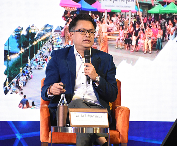 ดร.กิตติ สัจจาวัฒนา ผู้อำนวยการ บพท. กล่าวว่า เศรษฐกิจเชิงสร้างสรรค์เป็นตัวขับเคลื่อนตัวหนึ่งที่ทำให้เกิดความเจริญเติบโตทางเศรษฐกิจ แต่การพัฒนาพื้นที่จะเกิดขึ้นไม่ได้ถ้าไม่ได้มาจากความต้องการของประชาชนในพื้นที่ เพราะทรัพยากรและงบประมาณที่ลงไปจะเหมือนกับถมทะเลทราย เปิดน้ำในทะเลทรายน้ำก็ซึมหาย ทั้งนี้ จากการศึกษาพบว่า ประเทศไทยมีความเหลื่อมล้ำระหว่างคนจนและคนรวยคิดเป็น 20 เท่า ติดอันดับสูงสุดของโลก ทำให้เกิดคำพูดที่ว่า “รวยกระจุกจนกระจาย” เพราะมุ่งเศรษฐกิจบนพื้นฐานของอุตสาหกรรม ซึ่งต่อไปจะต้องถูก Disrupt ทั้งจากปัญญาประดิษฐ์และหุ่นยนต์ หากจะสร้างความเข้มแข็งทางเศรษฐกิจประเทศไทยต้องเปลี่ยนมาเป็นโมเดลพัฒนาประเทศแบบไทย เราต้องการสร้างเศรษฐกิจฐานรากที่มีการกระจายรายได้ไปสู่ประชาชน โดยฐานทุนที่ประเทศไทยมีความเข้มแข็งได้แก่ ฐานทุน BCG ความหลากหลายทางชีวภาพ ทรัพยากรพื้นถิ่น วัฒนธรรมที่เป็นอัตลักษณ์ โดยใช้กลไกความร่วมมือ กระบวนการวิจัยและกระบวนการเรียนรู้และจัดการเรียนรู้ ซึ่งมหาวิทยาลัยในพื้นที่จะมีบทบาททำให้เกิดการเปลี่ยนแปลง