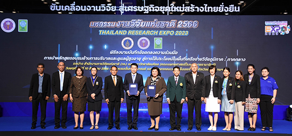 เมื่อวันที่ 10 สิงหาคม 2566 : กระทรวงการอุดมศึกษา วิทยาศาสตร์ วิจัยและนวัตกรรม โดย สำนักงานการวิจัยแห่งชาติ (วช.) และ คณะแพทยศาสตร์โรงพยาบาลรามาธิบดี มหาวิทยาลัยมหิดล จัดพิธีลงนามบันทึกข้อตกลงความร่วมมือ “การนำหลักสูตรการอบรมด้านการบริบาลและดูแลผู้สูงอายุ สู่การใช้ประโยชน์ในพื้นที่เครือข่ายวิจัยภูมิภาค : ภาคกลาง” เพื่อมุ่งยกระดับการดูแลและบริบาลผู้สูงอายุให้มีสุขภาวะและคุณภาพชีวิตที่ดี โดยมี ดร.วิภารัตน์ ดีอ่อง ผู้อำนวยการสำนักงานการวิจัยแห่งชาติ และ ศ.นพ.ปิยะมิตร ศรีธรา คณบดีคณะแพทยศาสตร์โรงพยาบาลรามาธิบดี มหาวิทยาลัยมหิดล ร่วมลงนาม พร้อมนี้ คณะผู้บริหาร วช. ผู้บริหารคณะแพทยศาสตร์โรงพยาบาลรามาธิบดี คณะกรรมการเครือข่ายวิจัยภูมิภาค เข้าร่วมพิธีฯ และเป็นสักขีพยานการลงนามความร่วมมือในครั้งนี้ ณ เวที Highlight Stage โรงแรมเซ็นทาราแกรนด์และบางกอกคอนเวนชันเซ็นเตอร์ เซ็นทรัลเวิลด์ กรุงเทพฯ