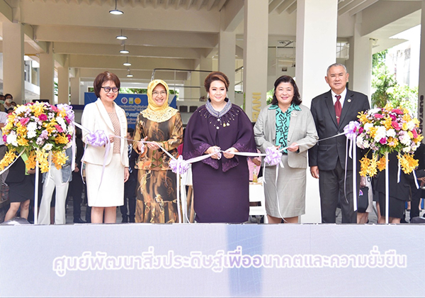 จากนั้น รมว.อว. ได้เป็นประธานในพิธีเปิด “ศูนย์พัฒนาสิ่งประดิษฐ์เพื่ออนาคตและความยั่งยืน” ที่ วช. ก่อตั้งขึ้นเพื่อเป็นอาคารต้นแบบในการนำสิ่งประดิษฐ์และนวัตกรรม มาสร้างพื้นที่ในการเรียนรู้ เพื่อสร้างแรงบันดาลใจให้แก่เยาวชน นักวิจัยและนักประดิษฐ์รุ่นใหม่ในการพัฒนาต่อยอดสิ่งประดิษฐ์และนวัตกรรมให้มีประสิทธิภาพ อีกทั้งมีการจัดกิจกรรมการถ่ายทอดองค์ความรู้ที่เกี่ยวข้องกับการส่งเสริมด้านการประดิษฐ์ที่สามารถนำไปประยุกต์ต่อยอดให้เกิดประโยชน์ในวงกว้าง โดยพัฒนาทักษะการเริ่มต้นการเป็นนักวิจัยและนักประดิษฐ์มืออาชีพต่อไปในอนาคต โดย วช. ได้จัดให้มีกิจกรรมการอบรมและการเรียนรู้ ดังนี้ 1. Sky Innovators: Coding for Drone Mastery 2. USB-Mini Torch (ประดิษฐ์ไฟฉาย Mini USB) 3. “DIY HERB SOAP งานศิลปะบนก้อนสบู่” 4. วัสดุฉลาดทางการแพทย์ ด้าน Biomedical Engineering 5. การประยุกต์ใช้ IoT ขั้นพื้นฐานเพื่อการเกษตร 6. การวางต้นไม้อย่างไรให้ลดฝุ่น 7. พื้นฐานการใช้เทคโนโลยีเซลล์ไฟฟ้าจุลินทรีย์จากพืชและสาหร่ายและการดูแลรักษา 8. ขนใบกับคายน้ำช่วยลดฝุ่นได้อย่างไร และ 9. สารอินทรีย์กำจัดแมลงทรงประสิทธิภาพจากเปลือกไข่ผสมน้ำหมักสับปะรด