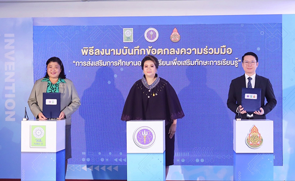 นอกจากนี้ วช. ยังได้จัดพิธีลงนามบันทึกข้อตกลงความร่วมมือ “การส่งเสริมการศึกษานอกห้องเรียนเพื่อเสริมสร้างทักษะการเรียนรู้” ระหว่าง สำนักงานการวิจัยแห่งชาติ (วช.) และ สำนักงานคณะกรรมการการศึกษาขั้นพื้นฐาน (สพฐ.) โดย ดร.วิภารัตน์ ดีอ่อง ผู้อำนวยการสำนักงานการวิจัยแห่งชาติ และนายภูริวรรษ คำอ้ายกาวิน ผู้แทนจากสำนักงานคณะกรรมการการศึกษาขั้นพื้นฐาน ร่วมลงนามบันทึกข้อตกลงความร่วมมือ โดยมี นางสาวศุภมาส อิศรภักดี รัฐมนตรีว่าการกระทรวง อว. เป็นประธาน ความร่วมมือครั้งนี้จะก่อให้เกิดการส่งเสริม ผลักดัน การเพิ่มพูนประสบการณ์ในการเรียนรู้และพัฒนาทักษะของเยาวชนโดยเน้นประสบการณ์เรียนรู้นอกห้องเรียน การสร้างแรงจูงใจในการเรียน เพิ่มพูนประสบการณ์ในการเรียนรู้ และพัฒนาทักษะที่สำคัญ และปลูกฝังคุณลักษณะของการเป็นผู้ใฝ่เรียนรู้ตลอดช่วงชีวิต