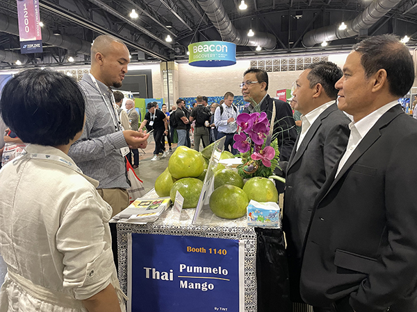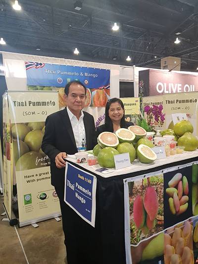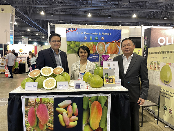 สำหรับงาน Natural Products Expo East นั้น เป็นงานที่จัดขึ้นเป็นประจำทุกปีในช่วงฤดูใบไม้ร่วง (Fall) ของประเทศสหรัฐอเมริกา เป็นงานแสดงเกี่ยวกับอุตสาหกรรมผลิตภัณฑ์จากธรรมชาติ ผลิตภัณฑ์เกษตรอินทรีย์ ผัก ผลไม้ ผลิตภัณฑ์เพื่อสุขภาพ และผลิตภัณฑ์อาหารเสริมต่างๆ จัดขึ้น ณ เมืองฟิลาเดลเฟีย รัฐเพนซิลเวเนีย ประเทศสหรัฐอเมริกา ในระหว่างวันที่ 20 - 23 กันยายน พ.ศ. 2566 มีผู้แสดงสินค้ากว่า 1,500 ราย จากหลายประเทศทั่วโลก มีผู้เข้าร่วมแสดงผลงาน (ผู้เชี่ยวชาญด้านอุตสาหกรรม) กว่า 29,000 ราย เป็นงานแสดงสินค้าที่มีศักยภาพสูงและคาดว่าจะมีผู้เข้าร่วมงานเพื่อเจรจาธุรกิจจากทั้งในสหรัฐอเมริกาและประเทศต่างๆ ทั่วโลก ไม่ต่ำกว่า 50,000 คน โดย วช. และทีมวิจัยจึงนำส้มโอจำนวน 4 สายพันธุ์ ได้แก่ ทองดี ขาวแตงกวา ขาวใหญ่ และทับทิมสยาม ไปออกบูธเพื่อเปิดตัว นำเสนอ และแนะนำส้มโอไทยให้ผู้บริโภคได้รู้จัก ได้ทดลองชิมรสชาติ พบว่า ผู้บริโภคให้การยอมรับและชื่นชอบรสชาติและสีสันของส้มโอไทยเป็นอย่างมาก นอกจากนี้ยังได้พบและเจรจาการค้ากับภาคเอกชนในหลายประเทศ เป็นการสร้างเครือข่ายกับผู้ขายในอุตสาหกรรมเดียวกัน ทำให้สามารถเปิดตลาดสหรัฐฯ ได้เพิ่มมากขึ้น
