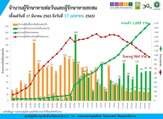 รักษาหายป่วยแล้ว 1,689 ราย (62.56%) เพิ่มขึ้น 96 ราย