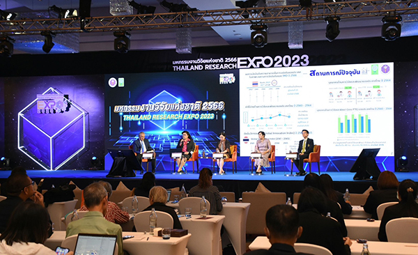 มหกรรมงานวิจัยแห่งชาติ 2566 หรือ Thailand Research Expo 2023 จัดโดย สำนักงานการวิจัยแห่งชาติ (วช.) กระทรวงการอุดมศึกษา วิทยาศาสตร์ วิจัยและนวัตกรรม ร่วมกับหน่วยงานเครือข่ายในระบบวิจัยทั่วประเทศ ระหว่างวันที่ 7 - 11 สิงหาคม 2566 ณ ห้องประชุมชั้น 22-23 โรงแรมเซ็นทาราแกรนด์ และบางกอกคอนเวนชันเซ็นเตอร์ เซ็นทรัลเวิลด์ กรุงเทพฯ ถือเป็นเวทีรวบรวมวงการนักวิจัยและนวัตกรรมที่ใหญ่ที่สุดของประเทศ เพื่อสร้างความตระหนักและรับรู้ในการขับเคลื่อนงานวิจัยและนวัตกรรม เมื่อวันที่ 8 สิงหาคม 2566 จึงได้มีการจัดเวทีเสวนาเรื่อง “แผนกำลังคน ววน. สู่การขับเคลื่อนด้วยงานวิจัยและนวัตกรรมเพื่อรองรับการพัฒนาที่ยั่งยืน” โดย มี รศ.ดร.ปัทมาวดี โพชนุกูล ผู้อำนวยการสำนักงานคณะกรรมการส่งเสริมวิทยาศาสตร์ วิจัยและนวัตกรรม (สกสว.) ศ.ดร.สมปอง คล้ายหนองสรวง ผู้อำนวยการหน่วยบริหารและจัดการทุนด้านพัฒนากำลังคนและทุนด้านการพัฒนาสถาบันอุดมศึกษา การวิจัย และการสร้างนวัตกรรม (บพค.) ดร.วิภารัตน์ ดีอ่อง ผู้อำนวยการสำนักงานการวิจัยแห่งชาติ (วช.) ศ.ดร.นพ.ภัทรชัย กีรติสิน รองอธิการบดีฝ่ายวิจัย มหาวิทยาลัยมหิดล ร่วมเสวนา ดำเนินรายการโดย คุณสมปรารถนา สุขทวี รองผู้อำนวยการสำนักงานการวิจัยแห่งชาติ