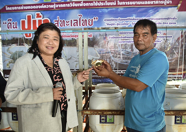วช. ลงพื้นที่ท่าชนะ จังหวัดสุราษฎร์ธานี เยี่ยมชมผลสำเร็จของงานวิจัย “ธนาคารปูม้า” เพื่อสร้างอนาคตที่ยั่งยืน ทางรอดปูม้าไทยคืนสู่ท้องทะเล