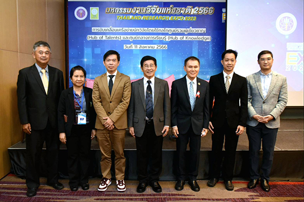 วันที่ 11 สิงหาคม 2566 วันสุดท้ายของมหกรรมงานวิจัยแห่งชาติ 2566 (Thailand Research Expo 2023) สำนักงานการวิจัยแห่งชาติ (วช.) กระทรวงการอุดมศึกษา วิทยาศาสตร์ วิจัยและนวัตกรรม จัดเสวนา"การขับเคลื่อนเครือข่ายนักวิจัยโดยใช้กลไกศูนย์รวมผู้เชี่ยวชาญ(Hub of Talents)และศูนย์กลางการเรียนรู้ (Hub of Knowledge)" โดย ศ.กิตติคุณ นพ.สุทธิพร จิตต์มิตรภาพ ประธานคณะกรรมการส่งเสริมวิทยาศาสตร์ วิจัยและนวัตกรรม รศ.ดร.เสริมเกียรติ จอมจันทร์ยอง ผู้อำนวยการแผนงานโครงการประเทศไทยไร้หมอกควัน ผศ.ดร.พรศักดิ์ ศรีสังสิทธิสันติ ผู้อำนวยการพัฒนาศูนย์รวมผู้เชี่ยวชาญระบบราง มหาวิทยาลัยเทคโนโลยีพระจอมเกล้าพระนครเหนือ ผศ.ดร.ต่อภัสสร์ ยมนาค ผู้อำนวยการศูนย์กลางความรู้เพื่อความร่วมมือในการต่อต้านคอร์รัปชันและส่งเสริมธรรมาภิบาลในระดับภูมิภาค จุฬาลงกรณ์มหาวิทยาลัย ดำเนินรายการโดย รศ. ดร.คมกฤต เล็กสกุล ผู้อำนวยการกลุ่มภารกิจการพัฒนา ววน. ด้านกำลังคนและสถาบันความรู้ ณ ห้อง Lotus 1-2 โรงแรมเซ็นทาราแกรนด์และบางกอกคอนเวนชัน เซ็นเตอร์ เซ็นทรัลเวิลด์ กรุงเทพมหานคร
