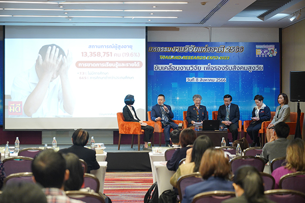 ในงาน “มหกรรมงานวิจัยแห่งชาติ 2566 : Thailand Research Expo 2023” ซึ่งจัดโดย สำนักงานการวิจัยแห่งชาติ (วช.) กระทรวงการอุดมศึกษา วิทยาศาสตร์ วิจัยและนวัตกรรม ได้ต่อยอดความรู้ความเข้าใจแก่สังคมด้วยการจัดเวทีเสวนาภายใต้หัวข้อ “การยกระดับเศรษฐกิจสร้างสรรค์ : ชุมชนเข้มแข็งและมาตรฐานผลิตภัณฑ์” ณ ห้องเวิลด์บอลรูม ชั้น 23 โรงแรมเซ็นทาราแกรนด์ และบางกอกคอนเวนชันเซ็นเตอร์ เซ็นทรัลเวิลด์ เมื่อวันที่ 9 สิงหาคม 2566 โดยมี ดร.วิภารัตน์ ดีอ่อง ผู้อำนวยการสำนักงานการวิจัยแห่งชาติ พร้อมด้วย ดร.กิตติ สัจจาวัฒนา ผู้อำนวยการหน่วยบริหารและจัดการทุนด้านการพัฒนาระดับพื้นที่ (บพท.), รศ.ดร.สมหมาย ผิวสอาด ประธานที่ประชุมอธิการบดีมหาวิทยาลัยเทคโนโลยีราชมงคล และ นายวชิระ แก้วกอ รองผู้อำนวยการสำนักงานส่งเสริมวิสาหกิจขนาดกลางและขนาดย่อม (สสว.) ร่วมเวทีเสวนาฯ ดำเนินรายการโดย รศ.ดร.พีรเดช ทองอำไพ จากสถาบันคลังสมองของชาติ